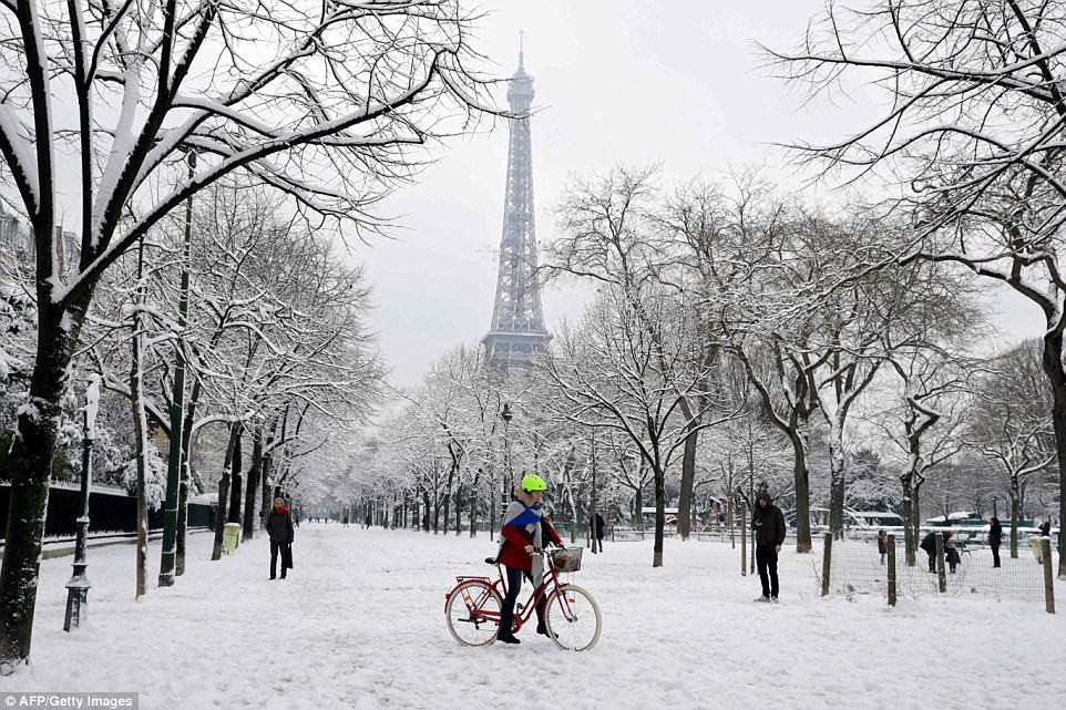 Những danh thắng mang tính biểu tượng của thành phố này như Notre Dame hay Tháp Eiffel đã được bao phủ bởi tuyết, và lâu đài Disneyland Paris trứ danh đã chuyển từ màu hồng xinh đẹp sang sắc trắng tinh khôi.