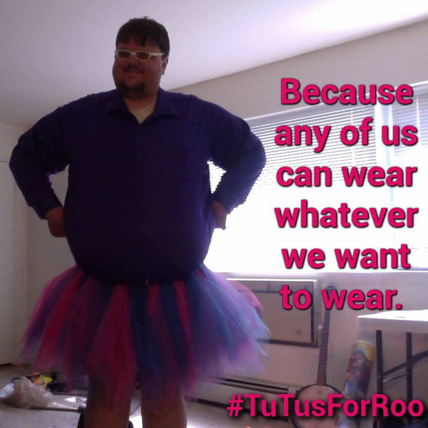 Thậm chí nhiều ông bố còn đăng ảnh mình mặc chiếc váy xòe đầy màu sắc như một lời ủng hộ mạnh mẽ dành cho mẹ con cậu bé Roo.