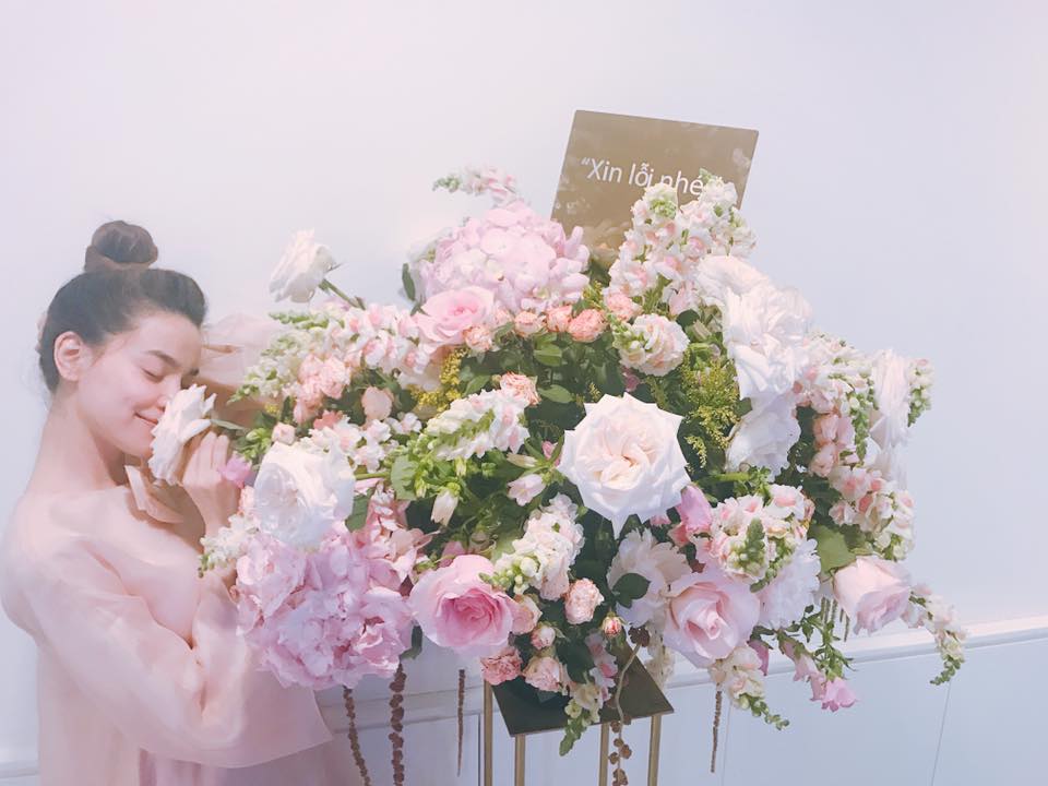 Hồ Ngọc Hà hạnh phúc mỉm cười bên giỏ hoa đẹp cùng lời "Xin lỗi nhé". |