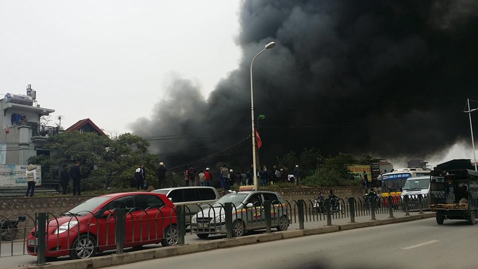 Cháy chợ Nhật Tân, khói đen bốc cao hàng trăm mét Ảnh: Trung Sơn / Otofun.