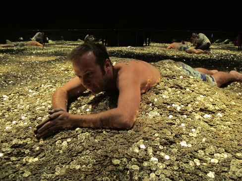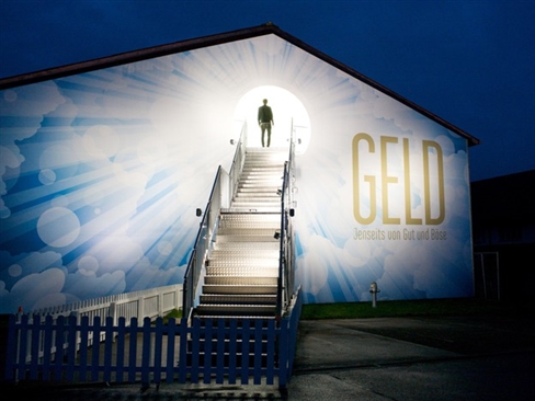 Cuộc triển lãm có tên "Geld - Jenseits von Gut und Boese" (tạm dịch là đồng tiền – thiện và ác của nó) được dựng lên với một căn phòng chứa tới 4 triệu đồng 5 xu vàng lấp lánh.