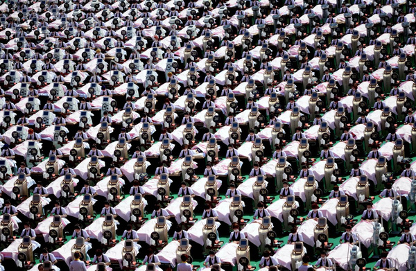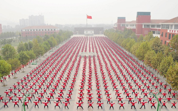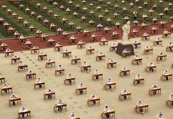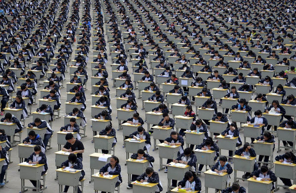 Hơn 1.700 học sinh đang tham gia kỳ thi ngoài trời ở Yichuan, Thiểm Tây vào ngày 11/4/2015. Ảnh: IB Times |