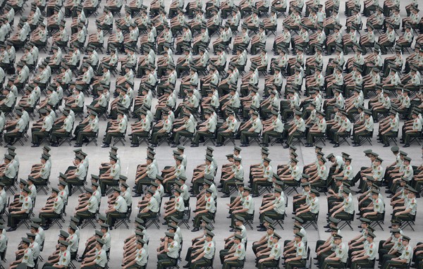 | Hơn 1.000 cảnh sát tham dự buổi tập luyện tại Giang Tô, Trung Quốc. |