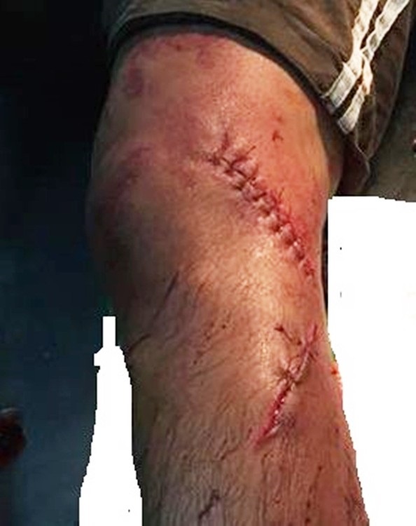| Vết chém vào chân khiến người chồng bị đứt tĩnh mạch - Ảnh: Internet |