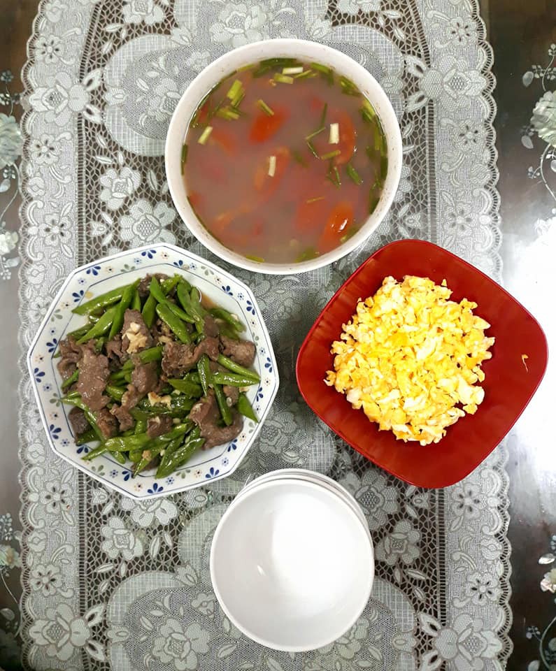 Cô vợ tâm sự cùng hội chị em như sau: "Các mẹ cho em hỏi mâm cơm 3 người (2 vợ chồng và 1 con 8 tuổi) thế này có phải đơn giản ít món quá không? Chồng em cứ chê bảo em nấu qua loa quá, không biết cầu kì, nhà người ta nấu thế nọ thế kia kìa.
