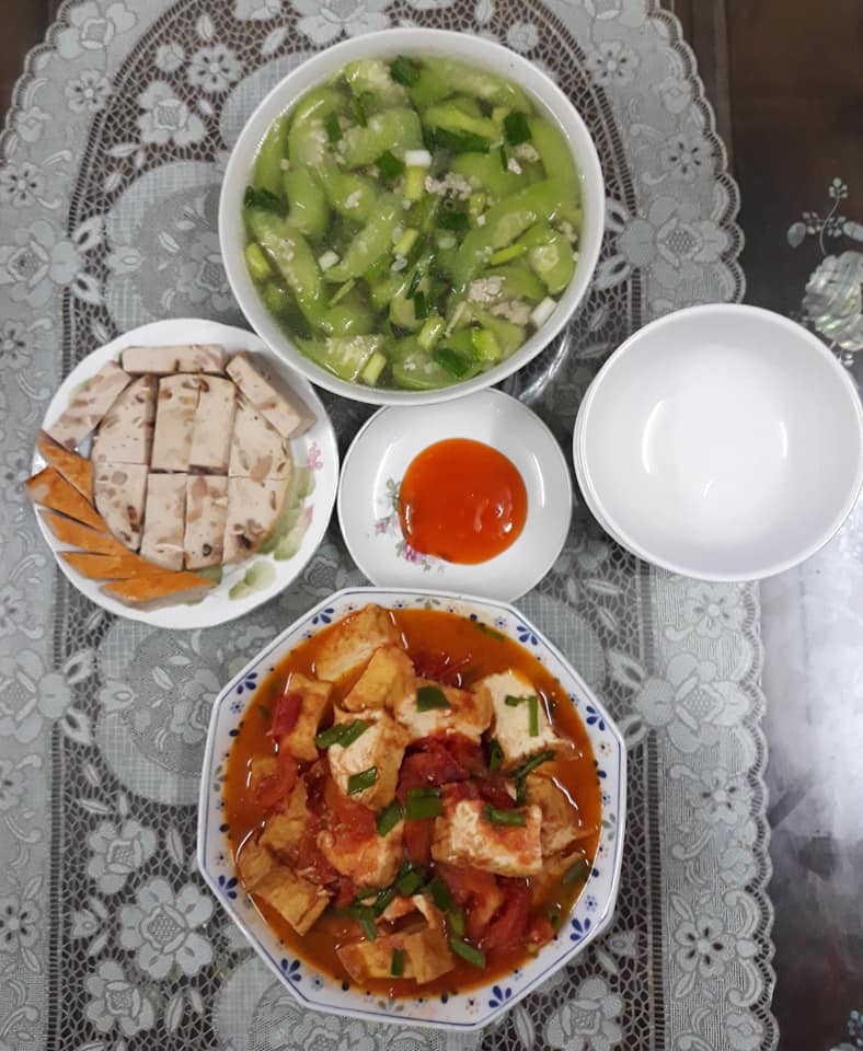 Kèm theo status bức xúc là hình ảnh các mâm cơm vợ nấu với giá 70 ngàn cho 3 người với khá đủ món và đầy đặn, không đến nỗi đạm bạc hay khó ăn như anh chồng nhận xét.