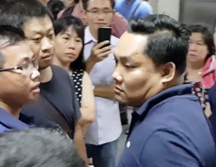Người đàn ông lạ mặt đe dọa, cản trở người dân chung cư Carina khi trình bày nguyện vọng với chủ đầu tư được xác định không phải là nhân viên của công ty Hùng Thanh.