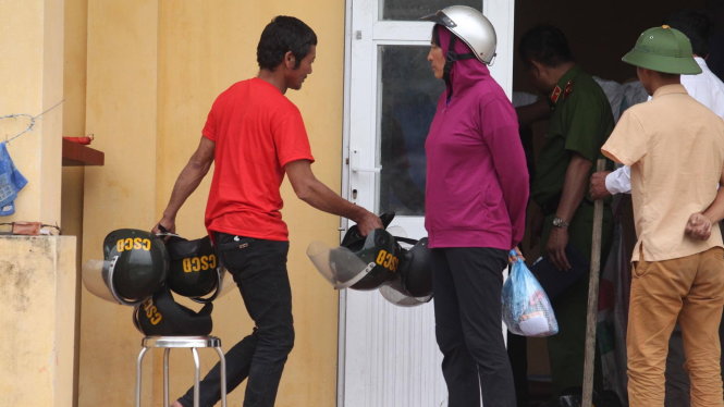 Người dân đem tư trang trả lại các chiến sỹ cảnh sát cơ động. Ảnh: Nguyễn Khánh/Tuổi trẻ |