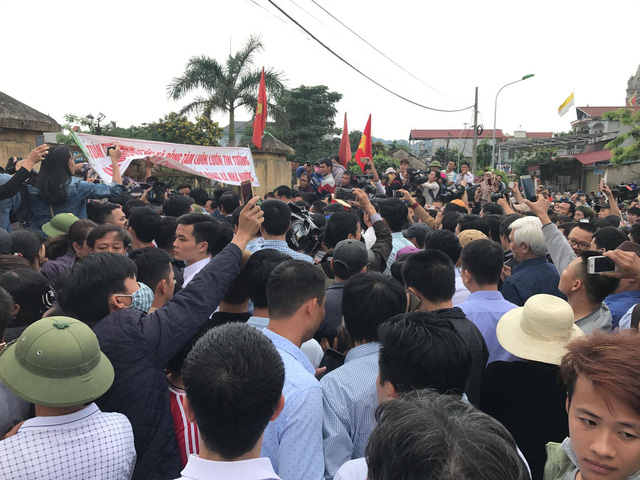 Biển người vây kín đoàn công tác của Chủ tịch thành phố. Ảnh: Dân trí |