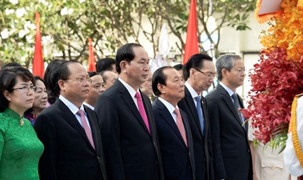 Chủ tịch nước Trần Đại Quang cùng đoàn đại biểu dâng hương, dâng hoa tưởng nhớ Chủ tịch Hồ Chí Minh. Ảnh: Tiền Phong |