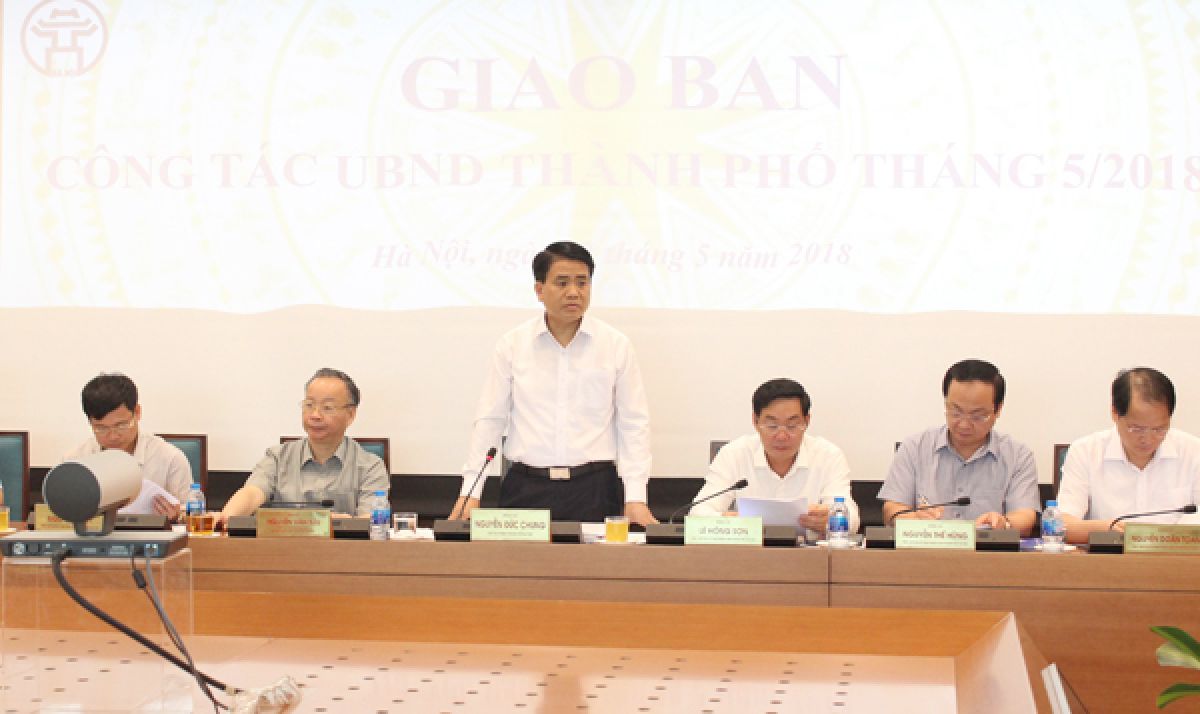 | Chủ tịch UBND TP Hà Nội Nguyễn Đức Chung chủ trì phiên hop giao ban công tác UBND TP tháng 5/2018 |