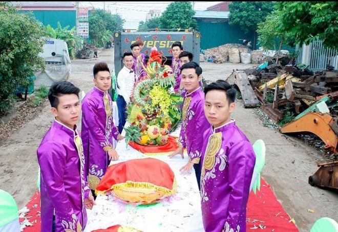Trước đó 7/11, trên mạng xã hội chia sẻ hình ảnh về lễ ăn hỏi độc, lạ diễn ra tại Vĩnh Phúc và ngay lập tức thu hút sự chú ý của Cộng đồng mạng.