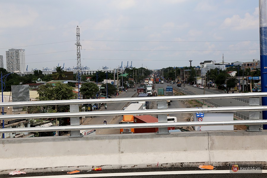 Những hình ảnh chúng tôi ghi nhận về cầu vượt trị giá hơn 200 tỉ đồng, "giải cứu" kẹt xe tại cảng Cát Lái.