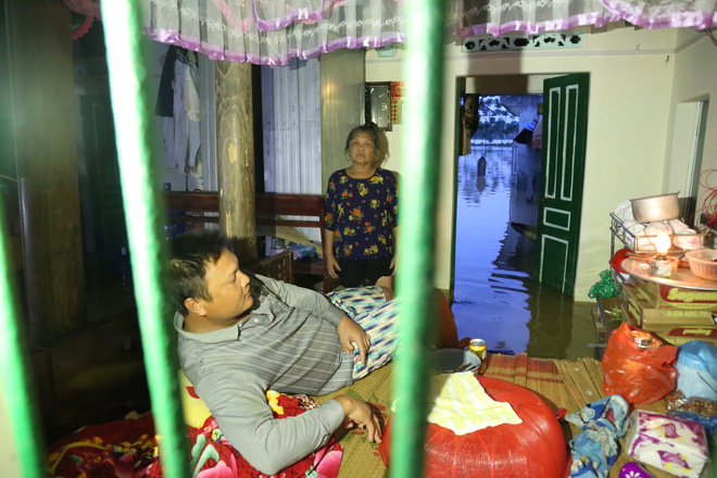 | Bác Bùi Văn Ngờ sống một mình trong căn nhà lõm bõm nước cho biết: "Tôi ở lại để giữ đàn lợn phía sau nhà, ngập to quá không ra di tản được" |