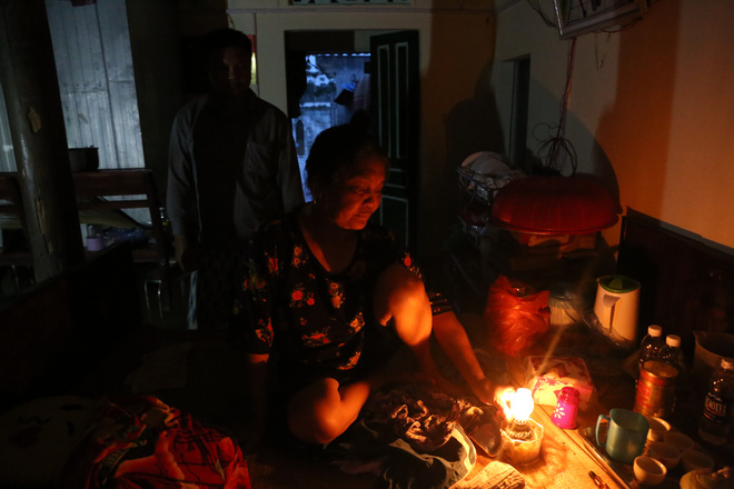 | Những hộ dân sống ở giữa và cuối làng thì chưa thể cấp điện vì nước đang còn ngập cao. |