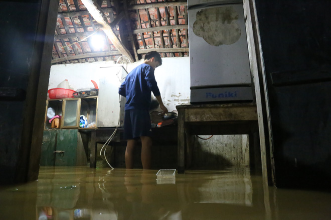 Đến tối 13/10, hàng trăm hộ dân tại làng Bùi Xá (Thị trấn Xuân Mai, Chương Mỹ, Hà Nội) vẫn đang sống trong cảnh nước ngập vào tận chân giường. Mặc dù đã được thông báo nhưng nhiều gia đình vẫn ở lại để giữ tài sản, không kịp di tản do nước lên quá nhanh.