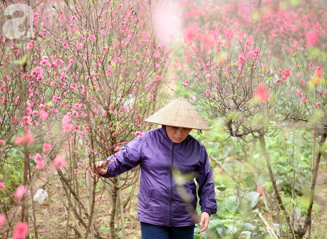 | Nhìn cánh đào thắm rụng đầy ruộng như xác pháo khiến ai cũng xót xa. |