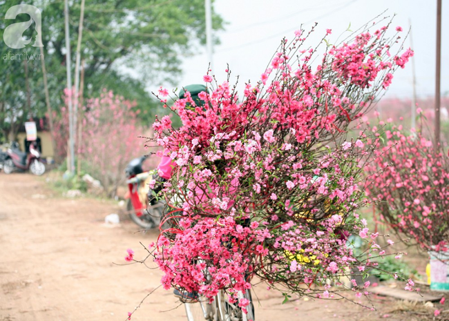 | Đào nở đẹp đến nao lòng, đỏ rực cả khoảng trời nhưng rất ít người mua bởi chỉ một vài ngày tới những cành đào này sẽ chẳng còn nụ mà nở. |