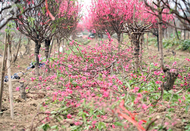 | Hay vườn đào thế này cách đây khoảng 1 tuần đã nở đỏ rực, nay chủ nhân buộc phải phá bỏ giữ lại gốc. |