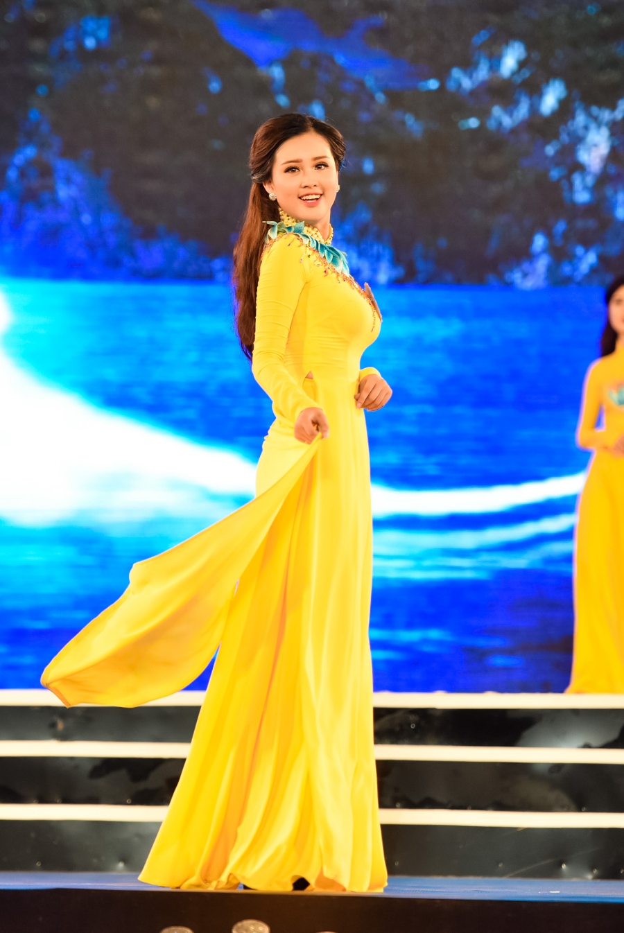 | Các thí sinh duyên dáng trong tà áo dài. |