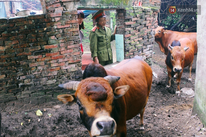 | Sống một mình trong bãi tha ma, bà Huệ nuôi thêm những chú bò, gần 20 con mèo. |