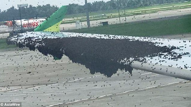 Daily Mail đưa tin cho biết, mới đây, hãng hàng không Citilink của Indonesia đã buộc phải tạm hoãn một chuyến bay đang chuẩn bị cất cánh sau khi hàng ngàn con ong bỗng nhiên bay đến rồi làm tổ trên cánh máy bay.