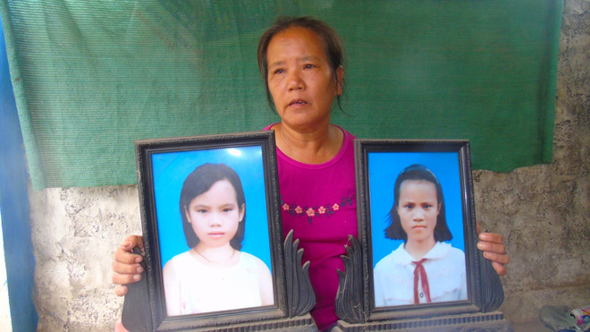 | Bà Xuân bên di ảnh hai con gái xấu số. |