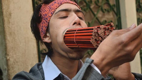 Raja Thapa, 19 tuổi, Nepal đã phá kỷ lục của người có miệng rộng nhất thế giới khi ngậm cùng lúc 138 chiếc bút chì.