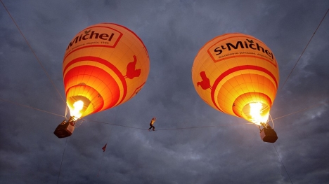 Thót tim với màn biểu diễn đi dây thăng bằng giữa hai khinh khí cầu