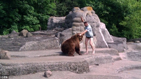 Sau khi trèo vào khu vực chuồng gấu để “dạo chơi”, người đàn ông này đã liều mạng trêu chọc loài động vật vốn cực kỳ đáng sợ khi nổi giận này.