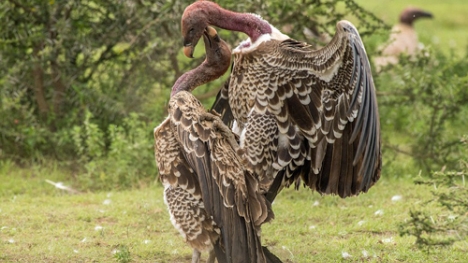 Có khoảng 20 đến 30 con kền kền tham chiến trong trận tranh giành xác một con linh dương đầu bò. Chúng lao vào nhau từ trên không kéo đối thủ xuống đất và dùng móng vuốt để tấn công nhau.