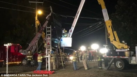 Một phụ nữ 56 tuổi tại Mỹ đã phóng quá tốc độ và bằng cách nào đó chiếc xe ô tô đã lao thẳng lên cột điện và mắc kẹt trên đó. Đội cứu hộ đã mất 2 giờ mới có thể đưa chiếc xe o tô xuống mặt đất bằng chiếc cần cẩn di động.