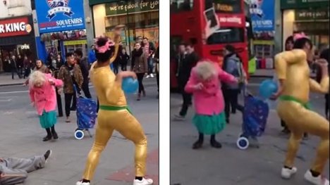 Cụ bà U90 nhảy múa cùng thanh niên giữa trung tâm thị trấn