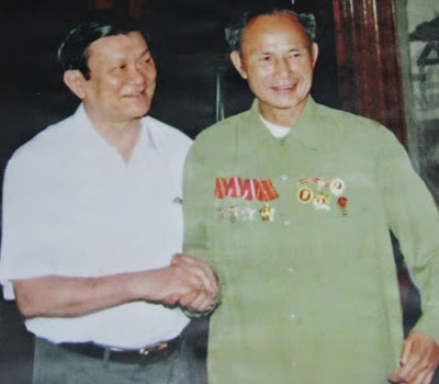 | Ông Phạm Văn Sang trong một lần hội ngộ với Chủ tịch nước Trương Tấn Sang. (Ảnh Công an Nghệ An) |