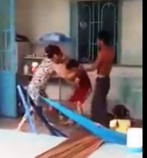 Hình ảnh hai mẹ con giằng co nhau. Ảnh cắt từ clip |