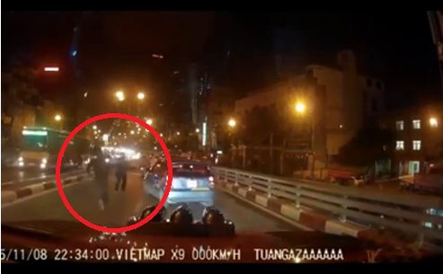 Chiếc xe bán tải lập tức đuổi theo với tốc độ cao, đến cầu vượt Thái Hà- Chùa Bộc thì chứng kiến cảnh chiếc xe taxi đã đâm hàng loạt xe máy, và lan can cầu vượt.