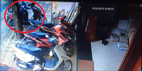 Chỉ trong vòng khoảng 5 giây, tên trộm đã phá được khóa và nổ máy xe chạy đi mất.