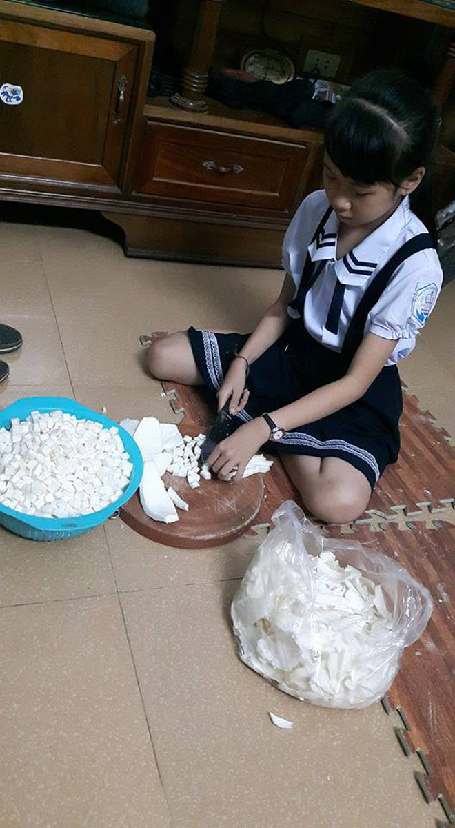 Những ngày thấp điểm, Bống bán được tầm 50 cốc chè bưởi do em tự nấu. Ngày đông khách như dịp lễ, em bán được 400 cốc. Mỗi cốc có giá 8.000 đồng. Cứ thế, Bống tự lập tài chính từ sớm, trong ví em lúc nào cũng có hơn 1 triệu đồng và có thể tự mua sắm cho mình.