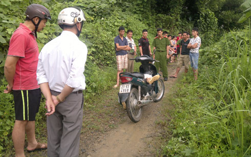 Tại hiện trường, nạn nhân nằm co quắp, chân phải vẫn gác trên xe máy.