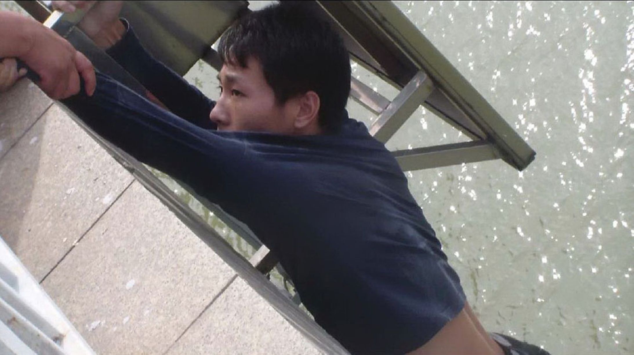 Dù rất nặng nhưng người phụ nữ vẫn cố gắng không buông tay trong suốt thời gian chờ ứng cứu. Đồng thời, anh con trai cũng bám tay kia vào thanh sắt của cây cầu. 20 phút sau, nhân viên cứu hộ đến, giúp đỡ cả hai mẹ con.