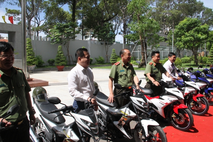 Theo thông tin trên báo Tuổi trẻ, Vietnamnet, Dân Trí, Giao thông, Công an TP.HCM, sáng 29/6, tại Hội trường công an TP.HCM đã diễn ra lễ bàn giao 100 môtô cho lực lượng cảnh sát phòng chống cướp giật công an TP.HCM.