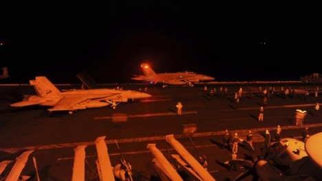 Việc cất cánh và đáp trên tàu sân bay khổng lồ USS Theodore Roosevelt dường như ấn tượng hơn vào ban đêm.