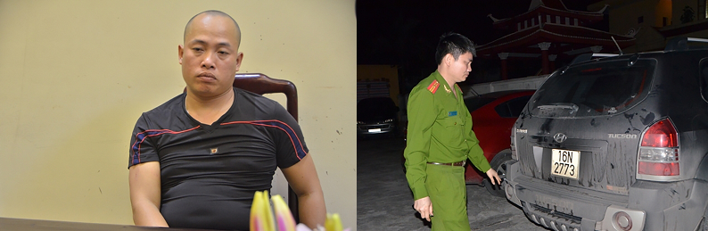 Lái xe Đồng Văn Trường tại cơ quan công an và chiếc ô tô gây tai nạn - Ảnh: Báo Quảng Ninh |