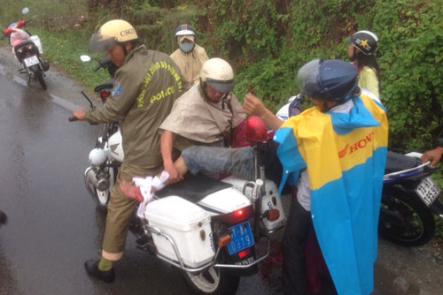 Nên đọcĐang làm nhiệm vụ điều tiết giao thông ở vòng xoay ra vào cảng Cát Lái, một chiến sĩ CSGT (thuộc Đội Cát Lái, phòng PC67, công an TP HCM) nhận tin báo của người dân đã lên xe mô tô công vụ, chạy đến ngay hiện trường. Được người đi đường hỗ trợ đỡ nạn nhân lên xe, anh đã chở người bị nạn đến bệnh viện quận 2, cấp cứu.
