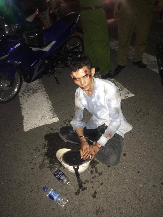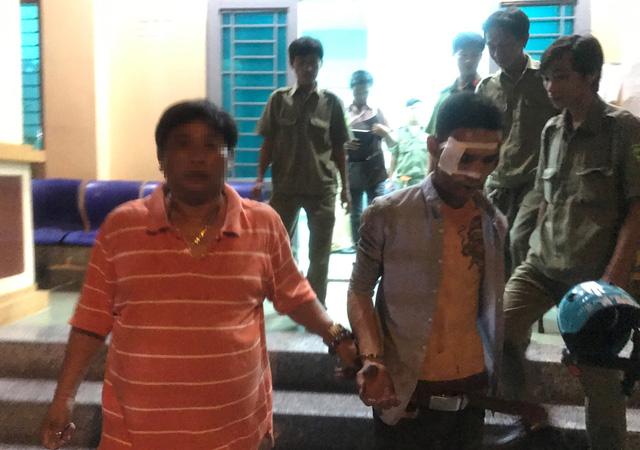 | Nghi can Chương (phải) được Công an đưa đi bệnh viện chữa trị thương tích vì bị té xe trên đường tẩu thoát. |