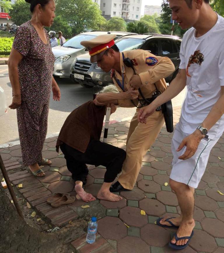 Tin tức thời sự mới nhất, Đội CSGT số 3 (Công an TP Hà Nội) vừa cho biết, khoảng 16h20 chiều ngày 3/7, trong lúc đang làm nhiệm vụ phân luồng giao thông tại nút giao thông trên đường Láng thì thượng úy Nguyễn Đức Sơn phát hiện một bà cụ hơn 80 tuổi bị ngất xỉu dưới trời nắng nóng nên đã nhanh chóng đưa bà cụ vào gốc cây sơ cứu.