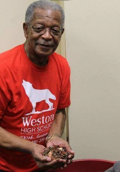 | Ông cụ Otha Anders với những đồng xu tích góp được |
