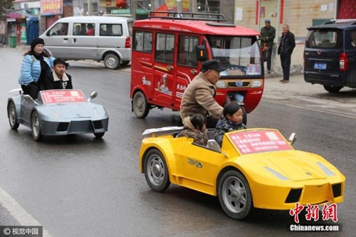 Hàng ngày, ông đã dùng những chiếc xe hơi tự chế này để đưa đón các cháu mình đi học mẫu giáo.Chi phí mà ông phải bỏ ra để chế mỗi chiếc Lamborghini là khoảng 5.000 nhân dân tệ tương đương với 16,5 triệu đồng.