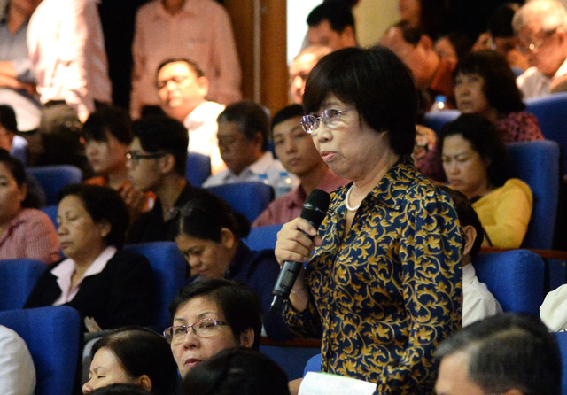 | Cử tri Hoàng Thị Lợi (Q.1) phát biểu về các vấn đề tham nhũng. Ảnh: Tuổi trẻ |