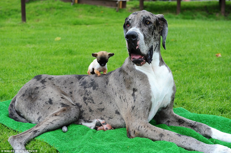 Theo đó, Daily Mail đưa tin cho biết chú chó Major cao nhất thế giới đã có cuộc gặp gỡ thú vị với người bạn bé nhỏ đến từ xứ Wales. Chú chó Major cao 2,1m trong khi chú chó Disney chỉ cao 7,62cm.